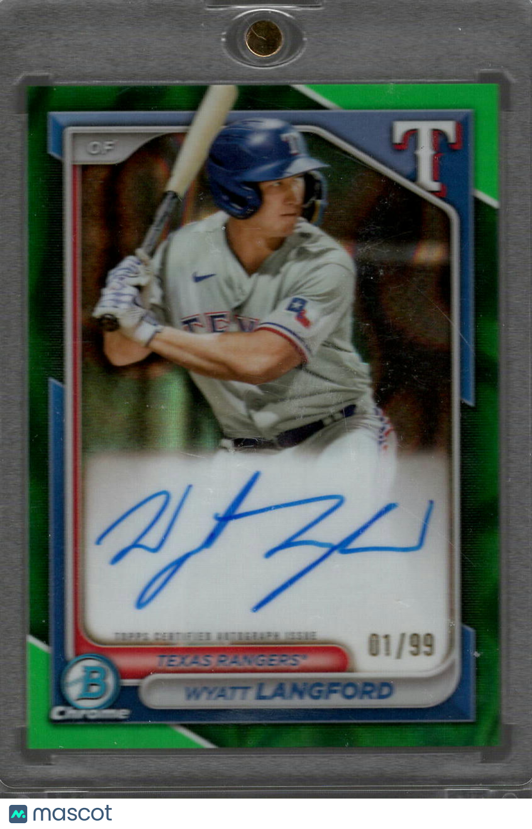 You are purchasing a 2024 Bowman Chrome Wyatt Langford #CPA-WLA Green Refractor /99 Autograph. You will receive the exact item in the photographs. Thank you for looking. Listed With Mascot.